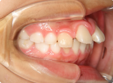 下あごの成長が不足しているため、下あごが後方に位置しています。相対的に上顎前突の状態にあります。